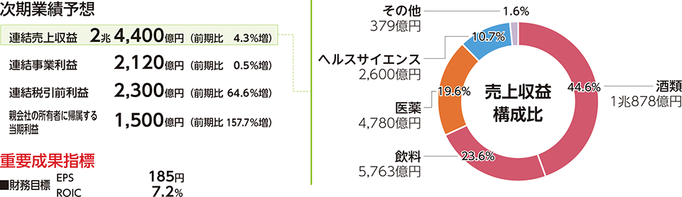 「午後の紅茶」ブランドでは、3月に「キリン 午後の紅茶 おいしい無糖」をリニューアルし、無糖紅茶の魅力を発信することで、紅茶市場の拡大及び無糖茶市場の強化も図ります。コーク・ノースイースト社は、好調な炭酸飲料を中心に、市場環境にあわせた価格戦略に取り組みながら、デジタルICTをはじめとしたサプライチェーンの効率化を図り、高い収益性を確保していきます。