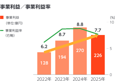 原材料価格の高騰をはじめとする外部環境の大きな変化に直面する中、機動的な価格改定や継続的な原価低減活動により収益基盤の強化を図ってきました。