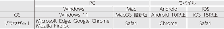 株主総会当日の議事進行の様子は、パソコン・スマートフォン等によりライブ配信でご確認いただくことができます。バーチャル出席を行うためには、以下の環境でのご利用を推奨いたします。なお、バーチャル出席に必要となる通信機器類及び通信料金等の一切の費用については、株主様のご負担となります。株主様がご利用のパソコン・スマートフォン等の不具合や、株主様ご自身の通信環境等を原因として、株主様がバーチャル出席できない場合や議決権等を行使できない場合もございますので、事前行使の上ご出席ください。
