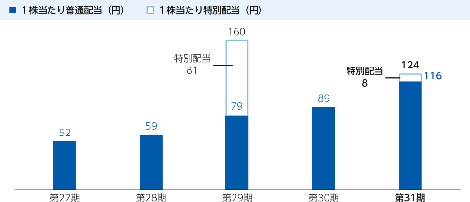 当社普通株式1株につき124円(うち、普通配当116円・特別配当8円)