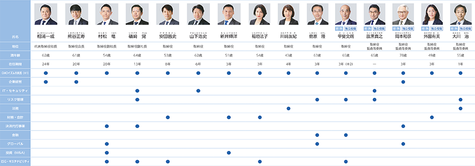 ※下記一覧は取締役が有するすべての専門性、経験を示すものではありません。