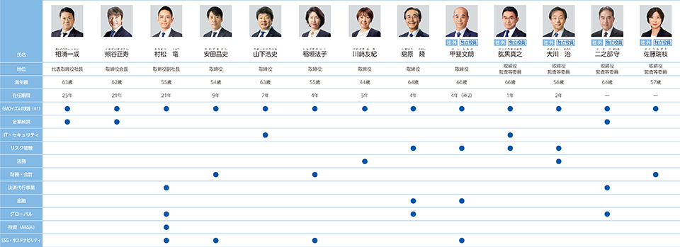 (注)下記一覧は取締役が有するすべての専門性、経験を示すものではありません。