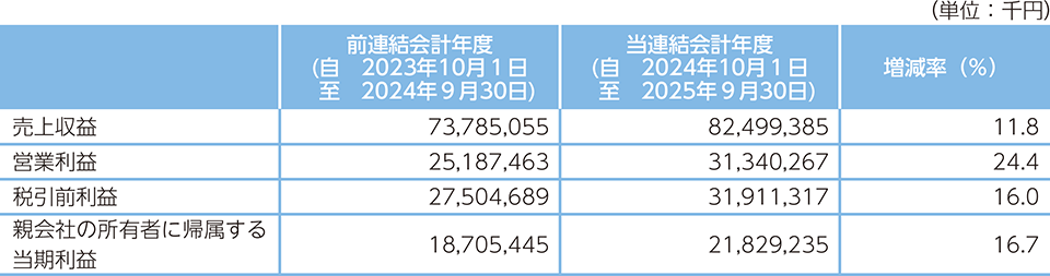 当連結会計年度(2024年10月1日〜2025年9月30日)の業績は、以下のとおりです。