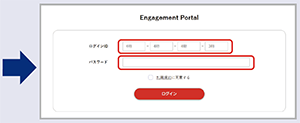 https://engagement-portal.tr.mufg.jp/にアクセスいただき、議決権行使書用紙の裏面に記載されている「ログインID」と「パスワード」をご入力いただくことでログインすることができます。