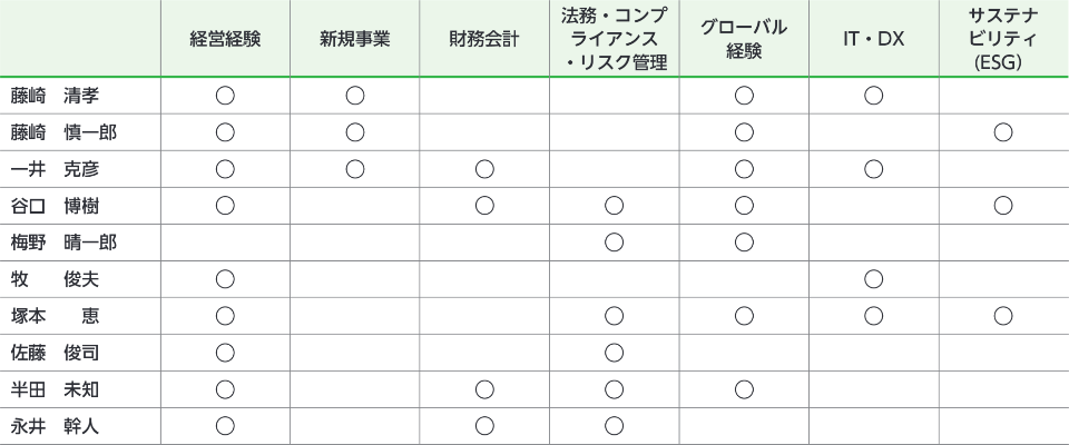 (ご参考)スキル・マトリックス[本株主総会後の予定]