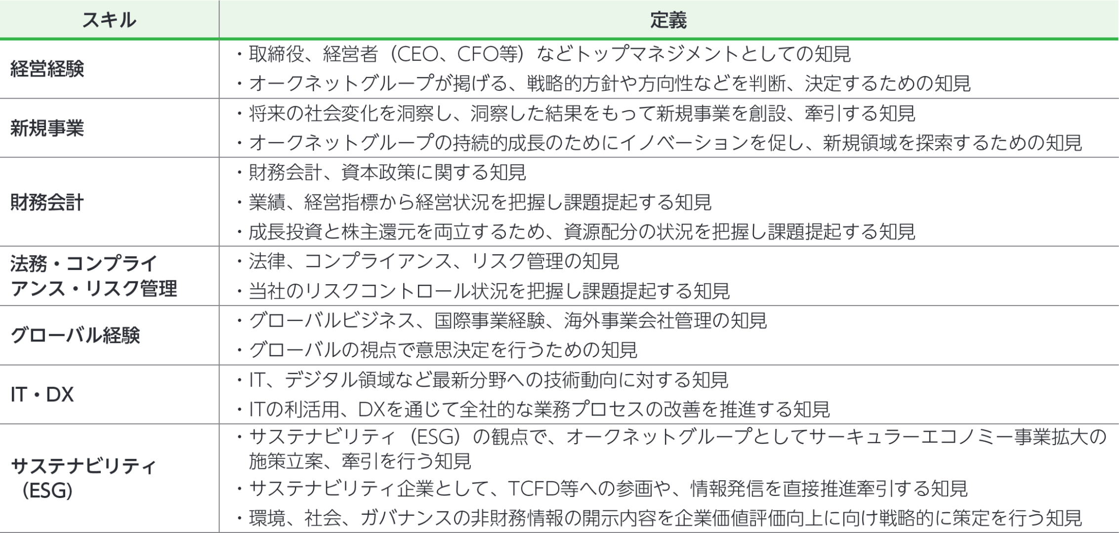 ※上記一覧表は、各氏の有する全ての知見・経験を表したものではありません。