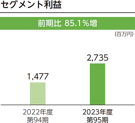 セグメント利益につきましては、製品価格適正化と北米の塩ビコンパウンドおよび国内の小巻ラップ製品の販売増加により、増益となりました。