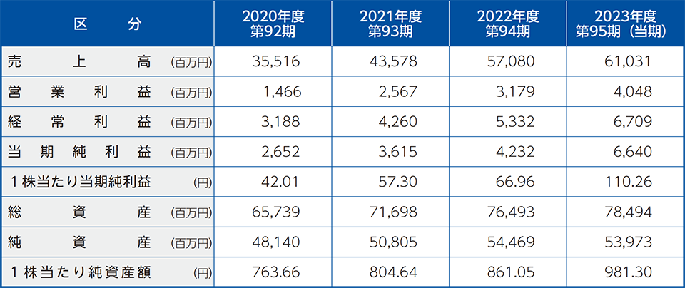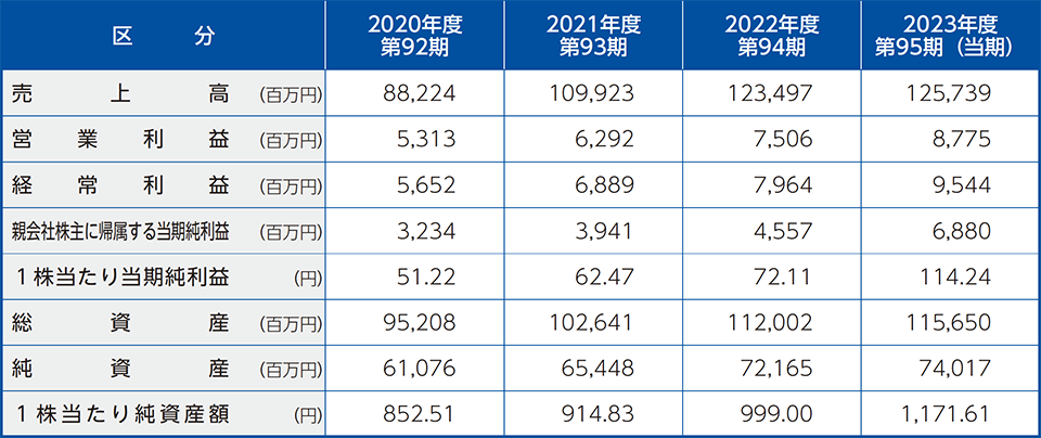 第93期より「収益認識に関する会計基準」(企業会計基準第29号2020年3月31日)等を適用しており、第93期以降の財産および損益の状況については、当該会計基準等を適用した後の数値を記載しております。