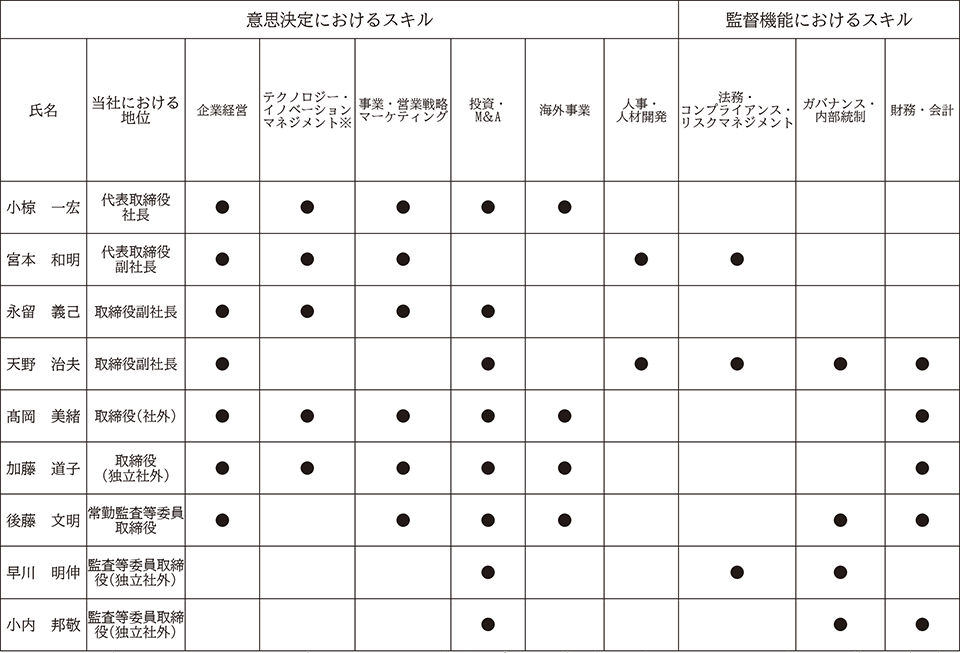 (注)上記一覧表は、取締役(監査等委員である取締役を含む)の有する全ての知見や経験を表すものではありません。