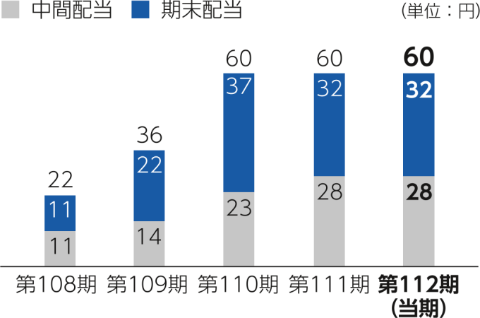 なお、中間配当金を含めました当期の年間配当金は、1株につき60円となります。