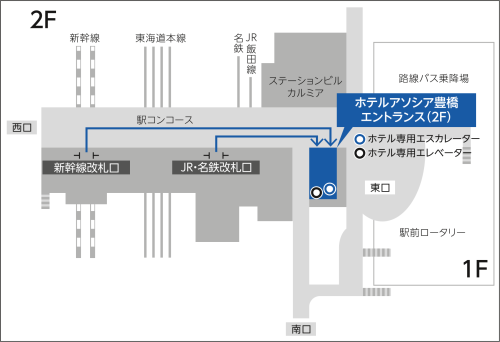 JR・名鉄豊橋駅の改札口を出て駅コンコースから直結の2Fエントランスがございます。