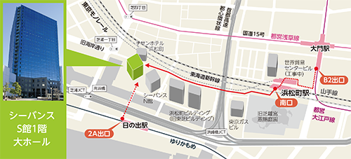 :浜松町駅 南口 ー 徒歩 約8分 → 会場