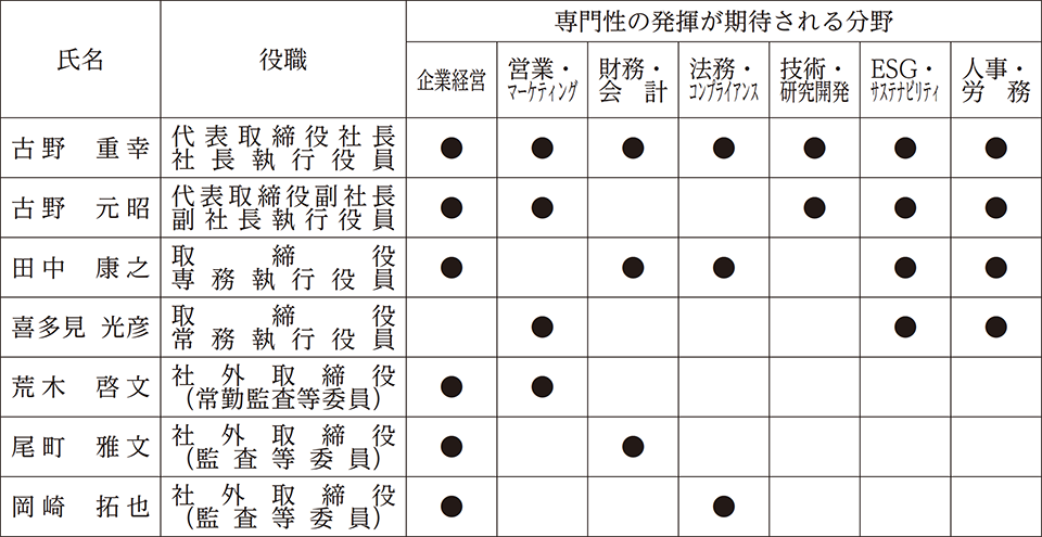 (ご参考)株主総会後の取締役会のスキルマトリックス(予定) 本招集通知記載の候補者を原案どおりご選任いただいた場合の取締役会のスキルマトリックスは以下のとおりとなります。