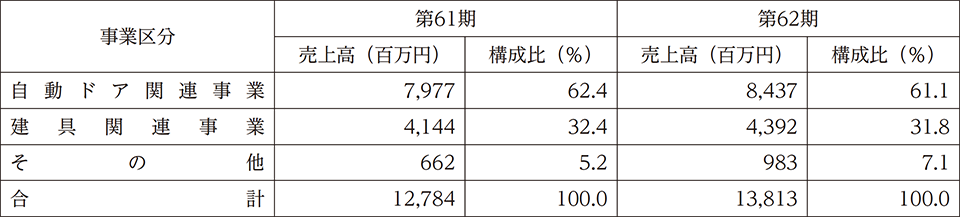 新規部門における大型物件の売上計上及びリニューアル受注が好調に推移したことに加え、保守契約台数が堅調に増加した結果、売上高は8,437百万円(前年同期比5.8%増)となりました。利益につきましては、リニューアル売上の増加、新規物件における選別受注・採算管理の徹底により、セグメント利益(営業利益)は2,184百万円(前年同期比8.5%増)となりました。