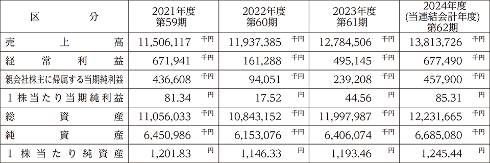 以上の結果、売上高は13,813百万円(前年同期比8.1%増)、営業利益は612百万円(前年同期比36.7%増)、経常利益は677百万円(前年同期比36.8%増)、親会社株主に帰属する当期純利益は457百万円(前年同期比91.4%増)となりました。