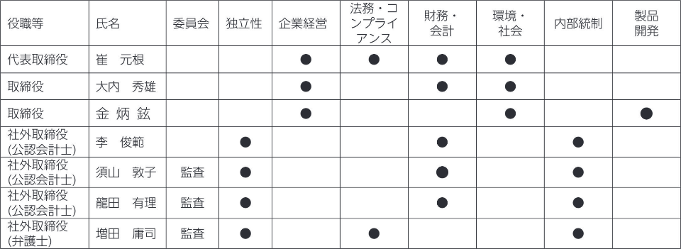 第1号議案及び第2号議案のとおり取締役を選任いただいた場合の取締役に期待する主な専門性・知見を示したものです。