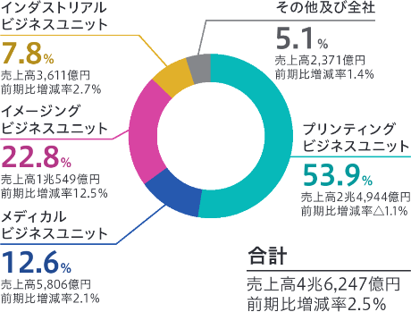 インクジェットプリンターは大容量インクモデルを中心に販売台数を伸ばした一方で、レーザープリンターは市況悪化により出荷調整をしたことで大きく減収となりました。これらの結果、当ビジネスユニットの連結売上高は前期比1.1%減の2兆4,944億円となりました。