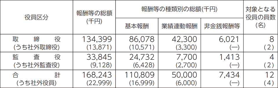 2. 取締役及び監査役の報酬等の総額等