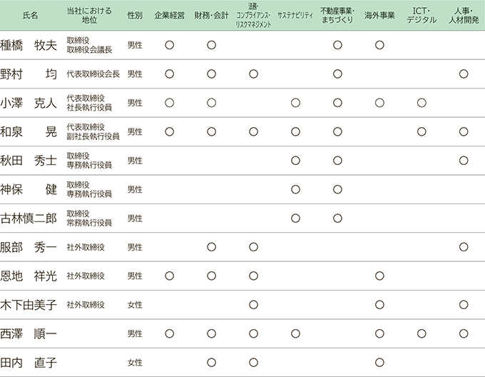 上記の一覧表は、各取締役等が有する全ての専門性と経験を表すものではありません。