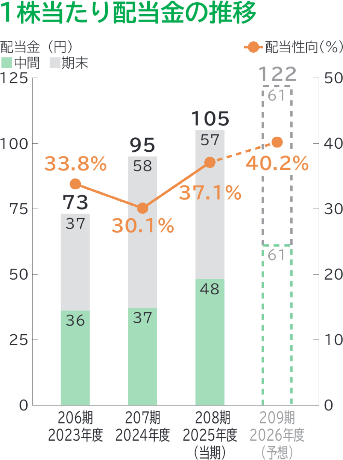現行のグループ中期経営計画(2025~2027年度)におきましては、2027年度の連結配当性向40%を目標としておりますが、当該目標水準には2026年度に1年前倒しで達する見通しであります。